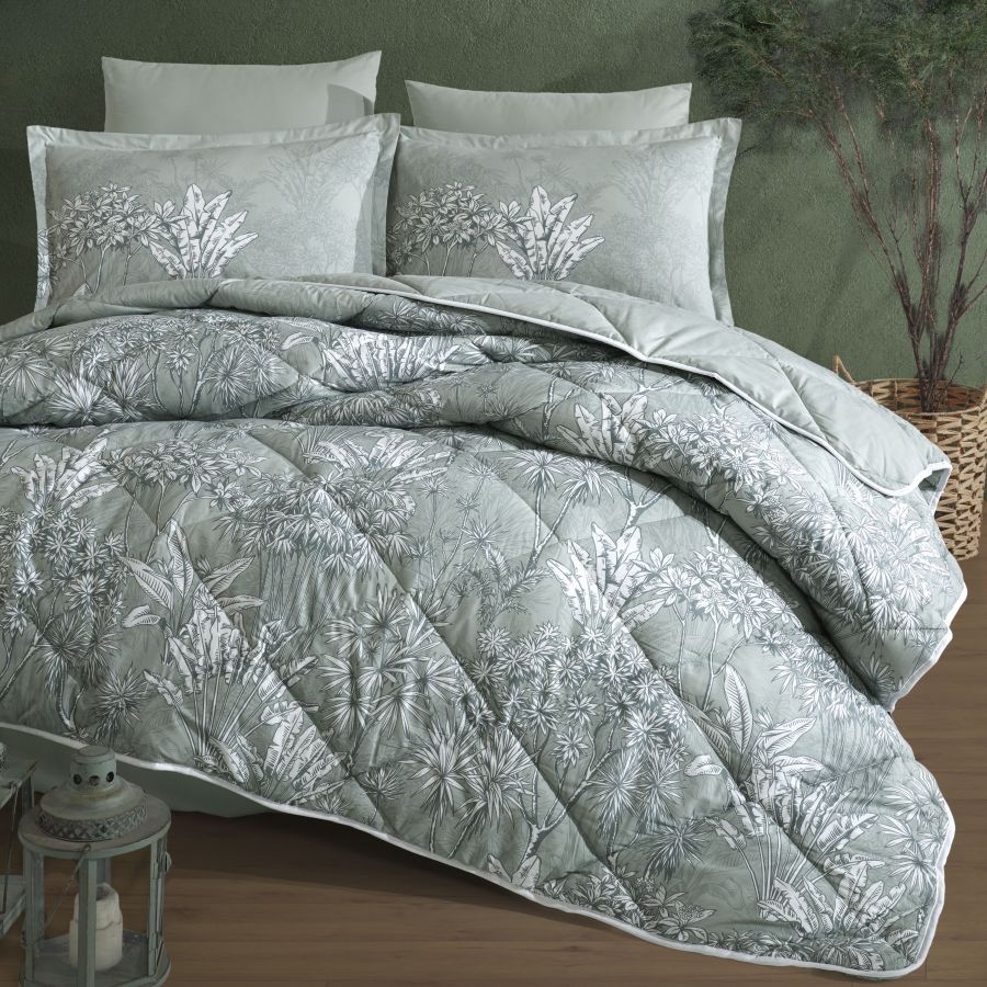 სილიკონის საბანი ორ საწოლიანი ბამბის ზედაპირით ღია მწვანე 195×215