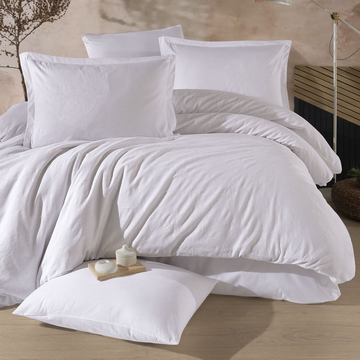 ჟაკარის ორ საწოლიანი თეთრეულის ნაკრები თეთრი